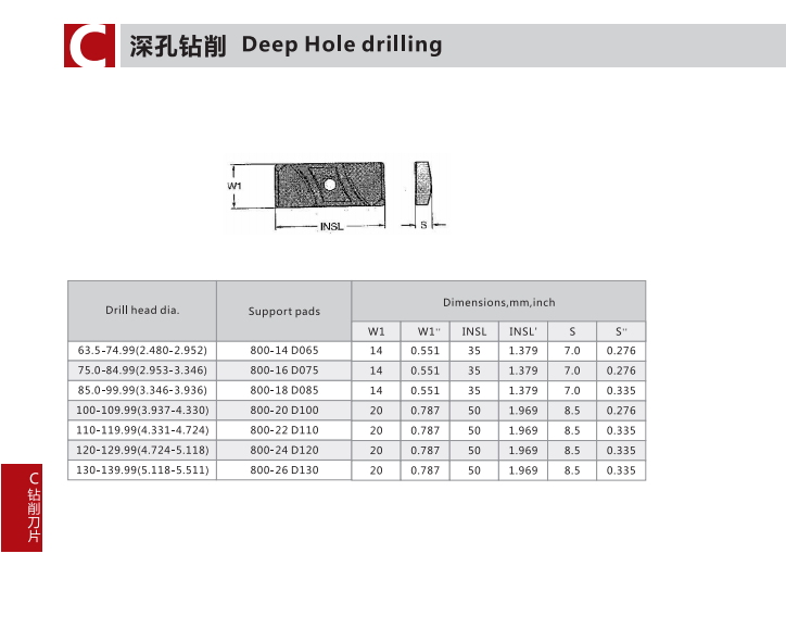 CORODRILL 800-14D/ 16D/ 18D/ 20D/ 22D/ 24D/ 26D 支撐墊 鉆頭制造商 用于深孔加工的硬質(zhì)合金鉆削刀片